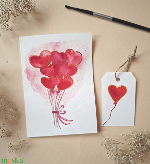 Szíves luficsokor-kézzel festett köszöntőlap, Valentin napi kártya, nőnapra, anyák napjára -ajándékkártyával