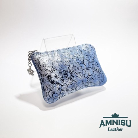Kék virág mintás egy cipzáras kulcstartó A6017