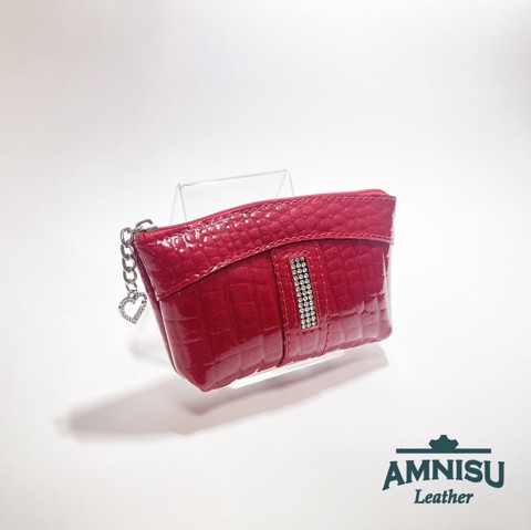 Piros lakk krokkómintás egy cipzáras egyenes kristály köves kulcstartó E5008