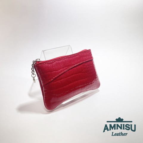 Piros lakk krokkómintás ívelt egy cipzáras kulcstartó C5008