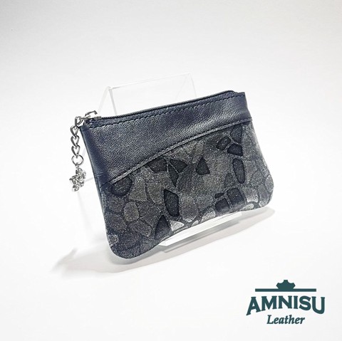 Sötét ezüst - szürke mintás ívelt egy cipzáras kulcstartó C8001