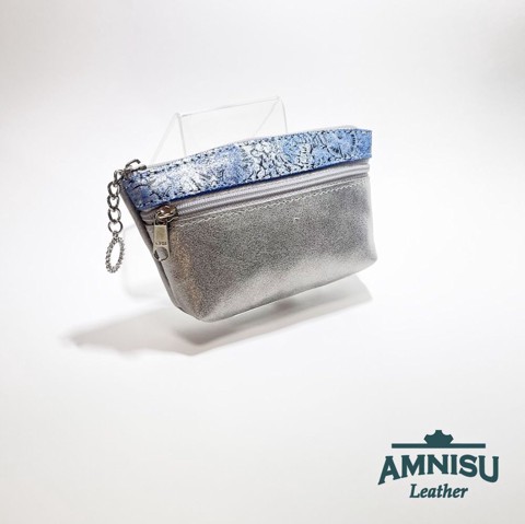Ezüst - kék virág mintás kettő cipzáras kulcstartó B1004