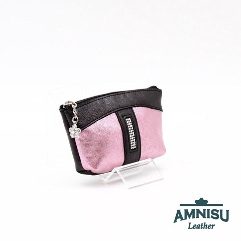 Fényes fekete - metál rózsaszín egy cipzáras egyenes swarovski köves kulcstartó E8006