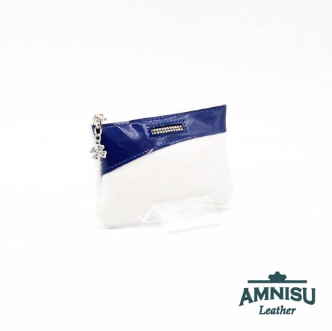 Fehér - sötétkék lakk ívelt egy cipzáras kristály köves kulcstartó D3002