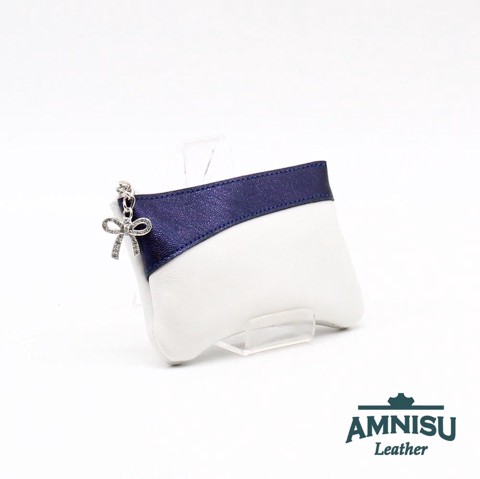 Fehér - metál sötétkék ívelt egy cipzáras kulcstartó C3002