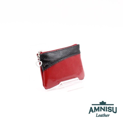 Bordó lakk - fekete gyűrt lakk ívelt egy cipzáras kulcstartó C5004