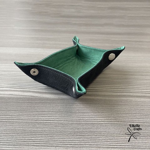 Minőségi marhabőrből készült tálca, melyet hétköznap is, és társasjátékokhoz is használhatunk. Kiválóan alkalmas, ha a kulcsainkat nem csak a szerkényre szeretnénk letenni, vagy kissebb dolgokat szeretnénk tárolni. De ha van egy (vagy több) társasjátékokunk, akkor kockadobó tálcaként is nagyon hasznos! Két réteg színes bőrből készült, melyet a szélén, illetve a hajtás mentén varrtunk. A cárna színe választható. Könnyen össze és szétpatentozható, így tárolása és szállítása is könnyű. Háromféle dobófelület méretben kapható: ~ 9 * 13 cm (perem: 3 cm) ~ 15 * 15 cm (perem: 4 cm) ~ 21 * 15 cm (perem: 4 cm) Rendelhető, elkészítési idő: 1-2 hét. Egyedi elképzelés esetén keressen fel bátran, és megbeszéljük a részleteket!