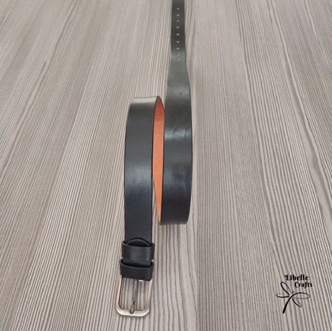 Vastag marhabőrből készült erős öv. Erős fém csattal rendelkezik, kettő bőr bújtatóval készül, melyből az egyik csúsztatható. Natúr színú bőr lett kézzel lefestve fekete színnel. Az öv hosszát a vásárló méretére igazítjuk. A méretet a csattól a lyukasztott részen a középső lyukig kell mérni. A csat és a bújtató kicsit eltérhet a képen szereplőtől. Szélessége: 3-4 cm. Rendelhető, elkészítési idő: 1-2 hét. Egyedi elképzelés esetén keressen fel bátran, és megbeszéljük a részleteket!