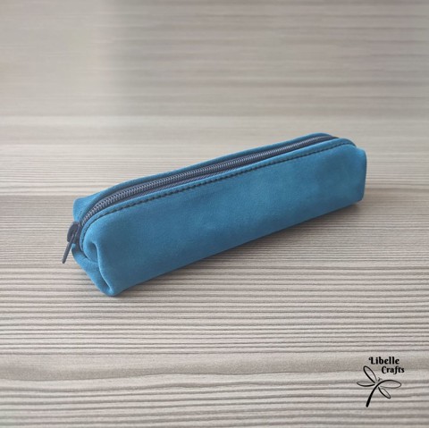 Kék bőrből készült tolltartó