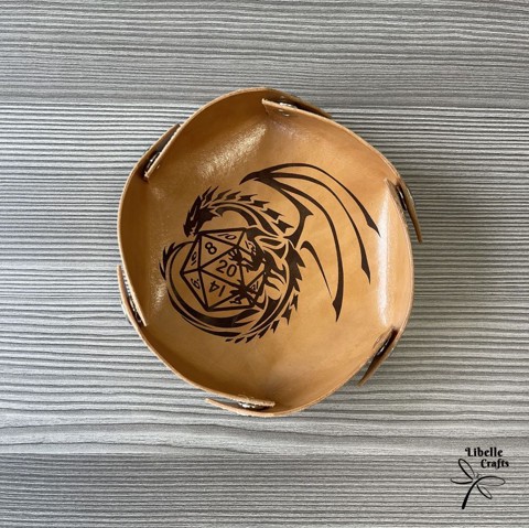 Minőségi marhabőrből készült kockadobó tálca, melynek játék asztalon a helye! Az aprólékos minta gravírozott. Tartós, lekezelt felületű, így fémkockához is ajánlott! Natúr bőr esetében a bőr az évek folyamán érni fog. Ez azt jelenti, hogy szép "bőrbarna" lesz, ez egy természetes folyamat. Könnyen össze és szétpatentozható, így tárolása és szállítása is könnyű. Kétféle patent elhelyezkedési opció van: ~ "1. egymás mellett" ~ "2. egymással szemben" (Az utolsó képen látható.) (A kockaszett nem tartozék.) Háromféle dobófelület méretben kapható: ~ 9 * 13 cm (perem: 3 cm) ~ 15 * 15 cm (perem: 4 cm) ~ 21 * 15 cm (perem: 4 cm) Rendelhető, elkészítési idő: 1-2 hét. Egyedi elképzelés esetén keressen fel bátran, és megbeszéljük a részleteket!