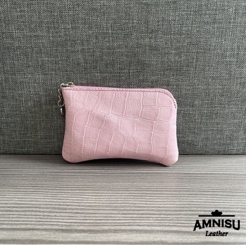 Rózsaszín krokkómintás egy cipzáras kulcstartó A4006