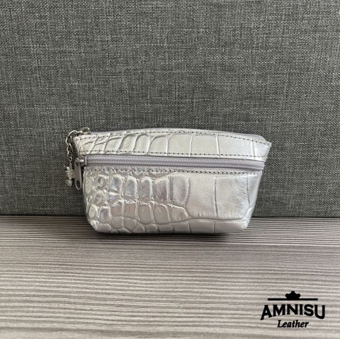 Ezüst krokkómintás kettő cipzáras kulcstartó B1002