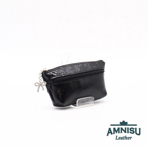 Fekete gyűrt lakk kettő cipzáras kulcstartó B8007