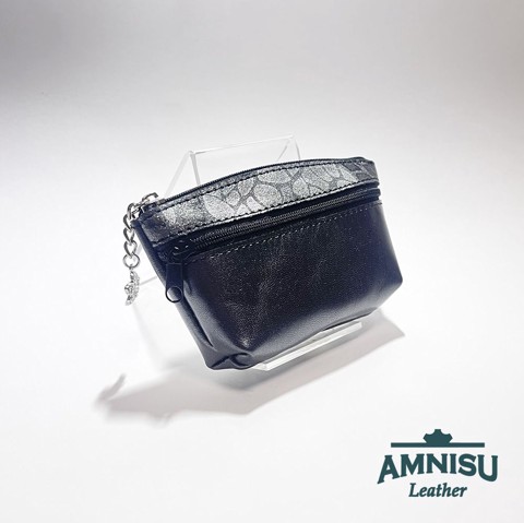 Sötét ezüst - szürke mintás kettő cipzáras kulcstartó B8001