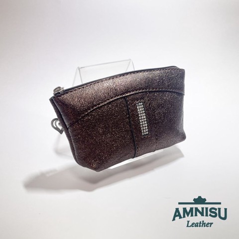 Sötétbarna egy cipzáras egyenes kristály köves kulcstartó E9001