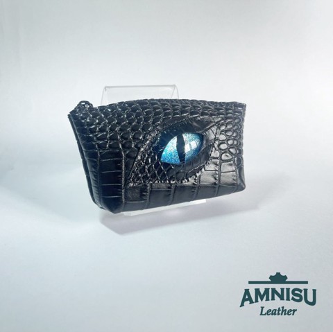 Fekete krokkómintás egy cipzáras kulcstartó sárkány szemmel F8008