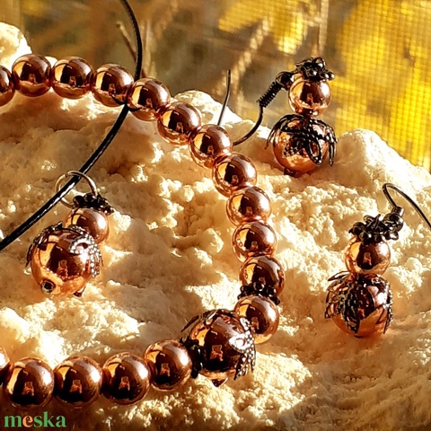 Hematit ékszerszett – karkötő + fülbevaló + medál - Rosegold Hercegnő