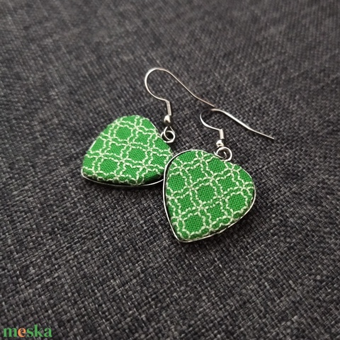 Zöld szív - hímzett fülbevaló