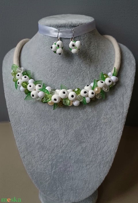 - Anyaga: akril gyöngy, gyurma, delfinkapocs, franciakapcsos fülialap