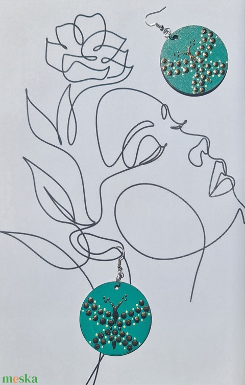 Mandala pontozott fa-akril fülbevaló 5cm hand made egyedi új (I)