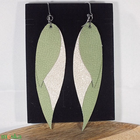 Bőr fülbevaló, zöld és bézs