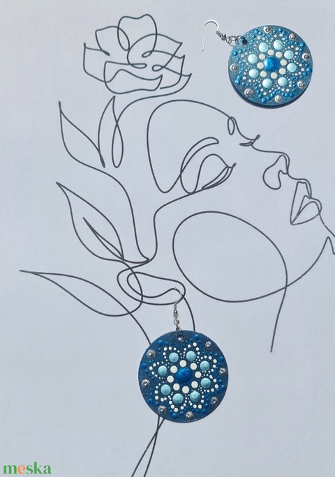 Mandala pontozott fa-akril fülbevaló 5cm hand made egyedi új (V)