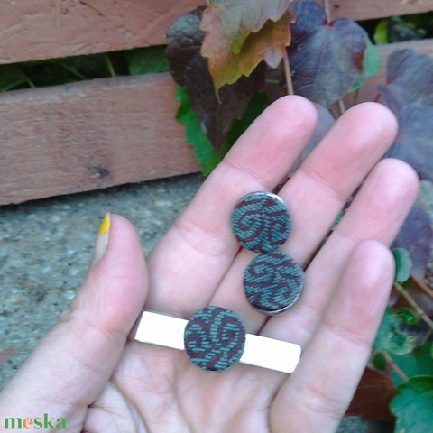 Hímzett mandzsettagomb és nyakkendőtű, nonfiguratív