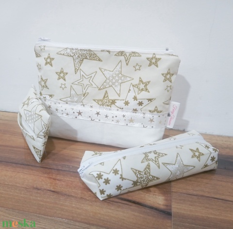 - Anyaga: pamutvászon, ragasztós közbélés, pamut csipke, cipzár, panama vászon, kevert szálas bélés, szatén szalag