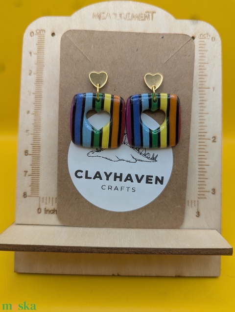 Szivárványos kézműves fülbevaló polimer gyurmából (polymer clay), LMBTQ+, karácsonyi ajándék, közepes, négyszög - 136