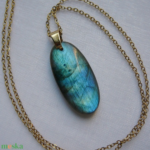 Orvosi acél szerelékre akasztottam ezt a különlegesen szép labradorit medált.