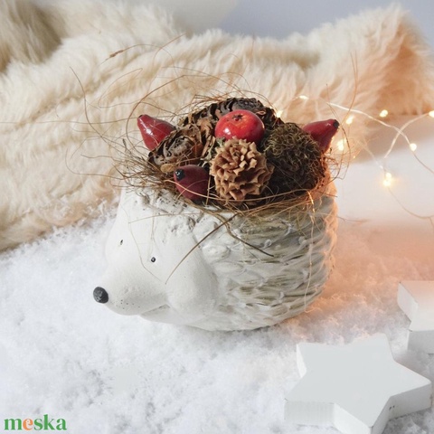 - Anyaga: raysin süni kaspó, gipsz termések, tobozok