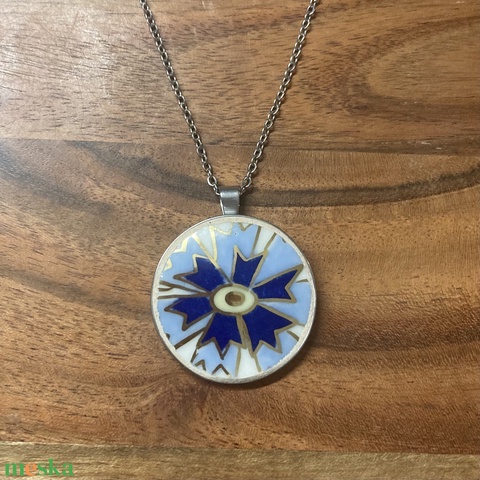 Mentett búzavirágos darabok - nemesacél nyaklánc porcelánnal, nagy medál