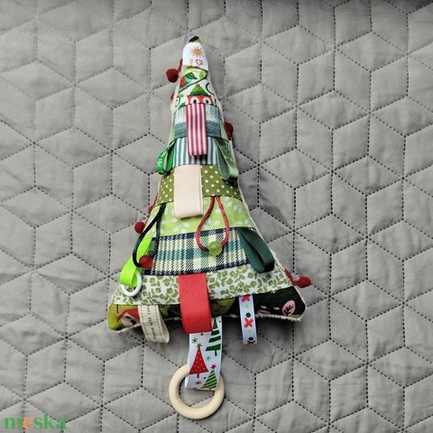minky, darált szivacs, szalag, pamut vászon, csörgő, fa karika, gyöngy, műanyag karika