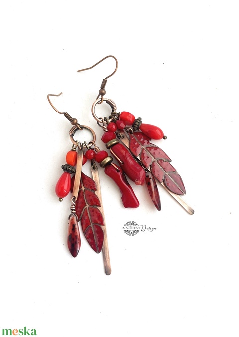- Anyaga: vörösréz, ékszerzománc, üveggyöngy, sárgaréz köztesek, réz, korall