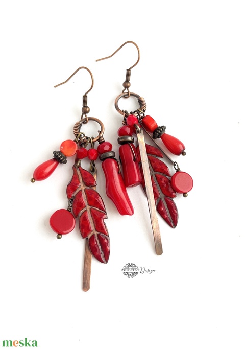 - Anyag/Összetevő vörösréz, ékszerzománc, üveggyöngy, sárgaréz köztesek, réz, korall