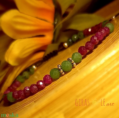 - Anyaga: rubin, zoizit, sterlingezüst, poliészter zsinór