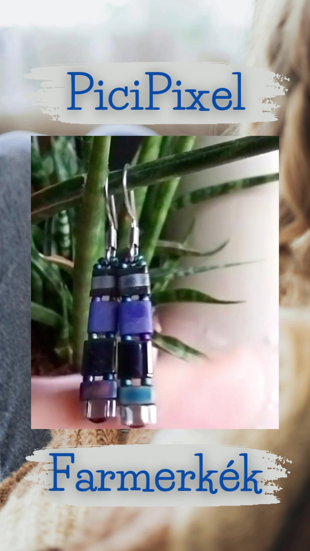 PiciPixel fülbevaló – farmerkék, apró geometrikus minimalista ékszer