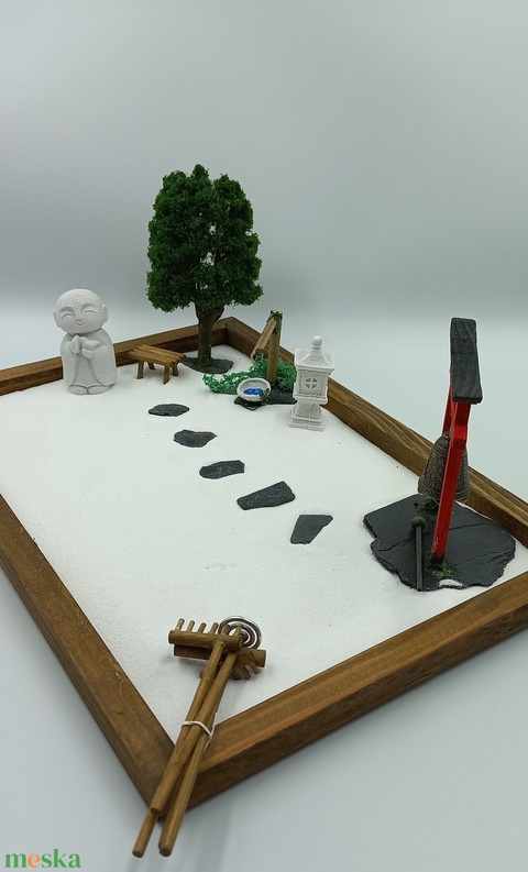 Japánkert (nagy)- harangos torii kapuval, Dzsizó szerzetessel, fával és kőlámpással