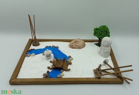 Japán kert (közepes)- patakkal, híddal, fával, füstölővel, kőlámpással és kis szerzetessel