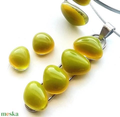 NEMESACÉL! Lime kavicsok, szabálytalan szépség üvegékszer szett.