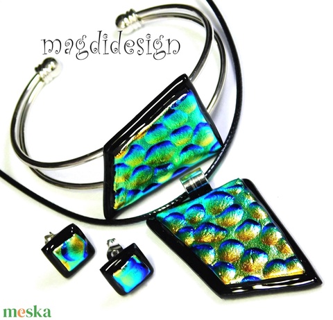 Színjátszó dichroic buborékok üvegékszer szett nyaklánc, karkötő, stiftes fülbevaló