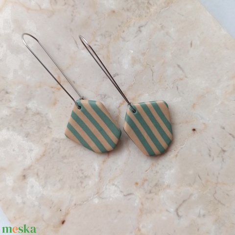 Csíkos gyurma fülbevaló - világoszöld és bézs