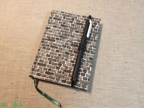 A/6Szürke téglamintás, vonalas, tollas notesz