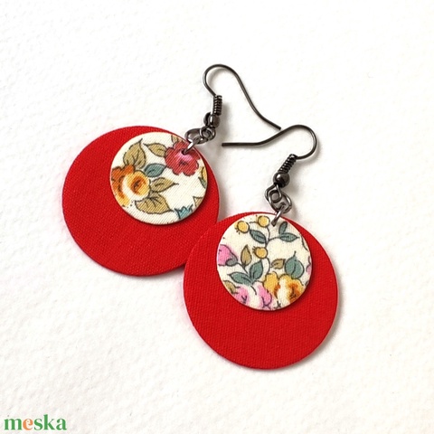 Élénk narancssárga és virágos kisméretű textilfülbevaló