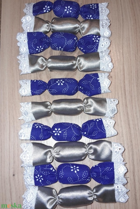 10db Textil szaloncukor ( ezüst és kékfestő)