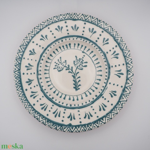 Korongozott kerámia kistányér - Népi ihletésű írókás mintával