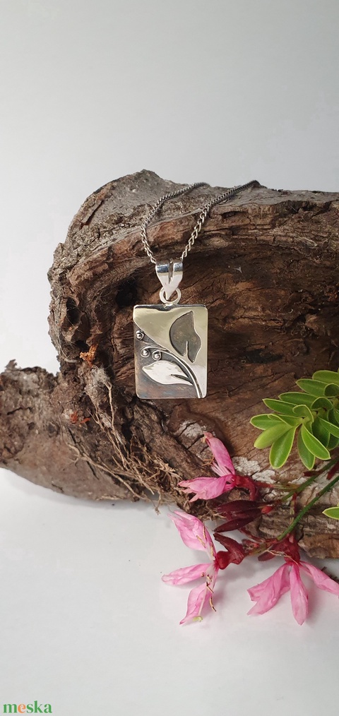 Füveskönyv - Virágos, leveles 925-ös finomságú ezüst medál