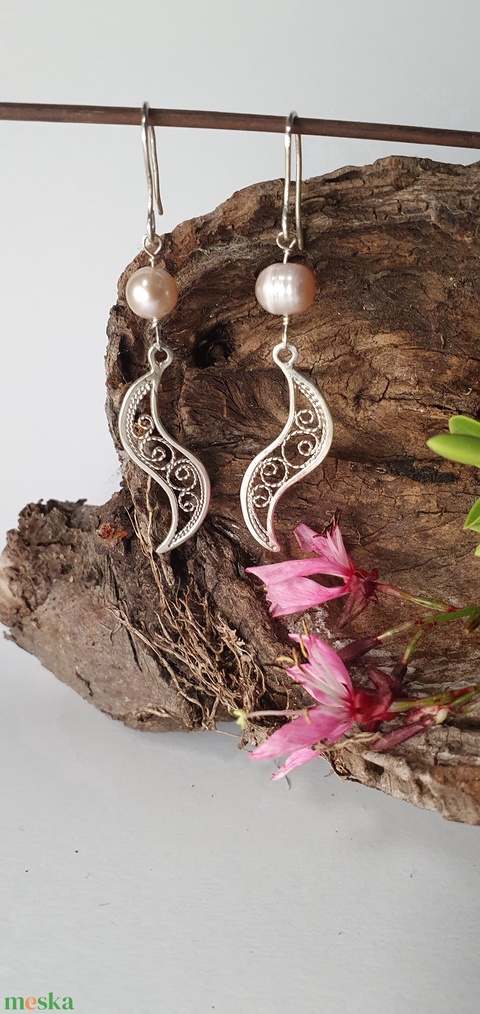 Csipke filigrán fülbevaló 925 finomságú -sterling- ezüstből, édesvízi tenyésztett gyönggyel