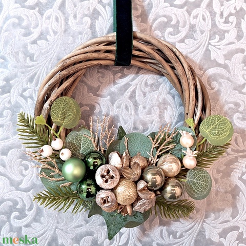 - Anyaga: műnövény, szárított termések, vessző koszorú, szalag