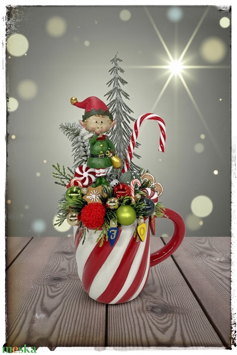 - Anyaga: kerámia bögre, figura, üveggömbök, műfenyő